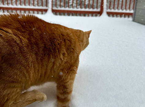 Tommy is a curious cat that will BEG to go outside no matter the elements even if his paws are freezing and he comes in 5 seconds later. His fur will immediately spike up when its cold and he will carefully creep further and further into the snow every time. I always get a good laugh at it when he does this. So having a photo of it makes me smile and feel like I am right back in that moment of happiness watching Tommy become a puffball.