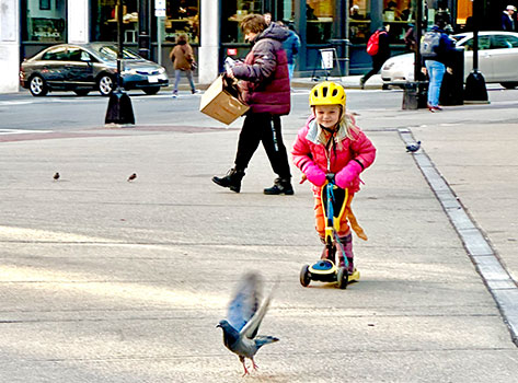 Watching this little girl in Boston chasing birds was one of the most wholesome moments that I have experienced when people-watching. With her parents trailing behind, she was fully engaged with chasing ALL of the pigeons on her scooter. This made me smile in the moment because it reminded me of my childhood with my parents. But even without thinking about my childhood, the moment was so precious that everyone around was happy watching this little girl experience a carefree life
