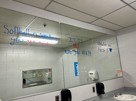 Reminders that the sport we play is just a game and that Athletes are people too. Having a team that is very supportive and puts mental health before is something a lot of other teams do not do. I am a very bring mental health advocate for athletes because it is not talked about enough,